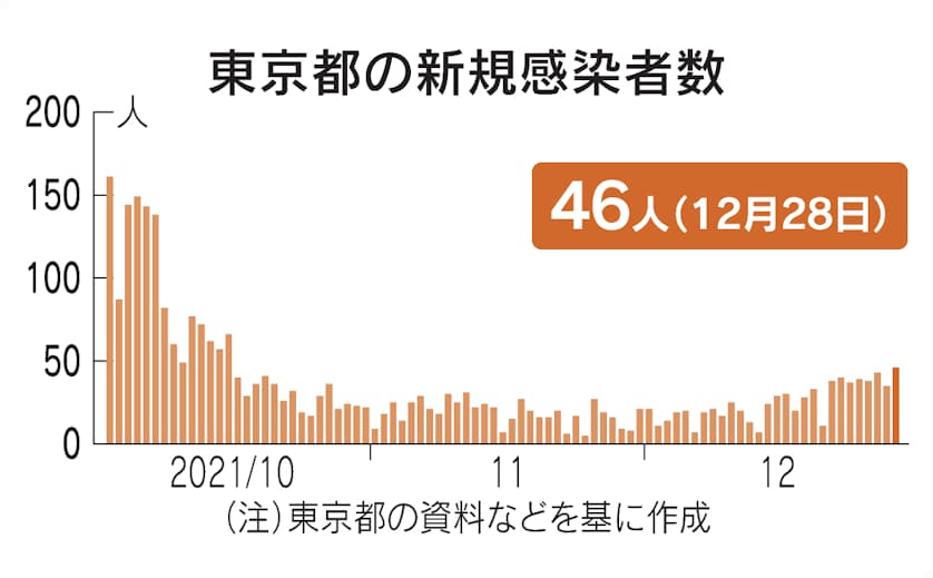 東京都は28日、新型コロナウイルスの感染者が新たに46人確認されたと発表しました。直近1週間平均の新規感染者は約39人で、前週(27人)比で147.0%とのことです。